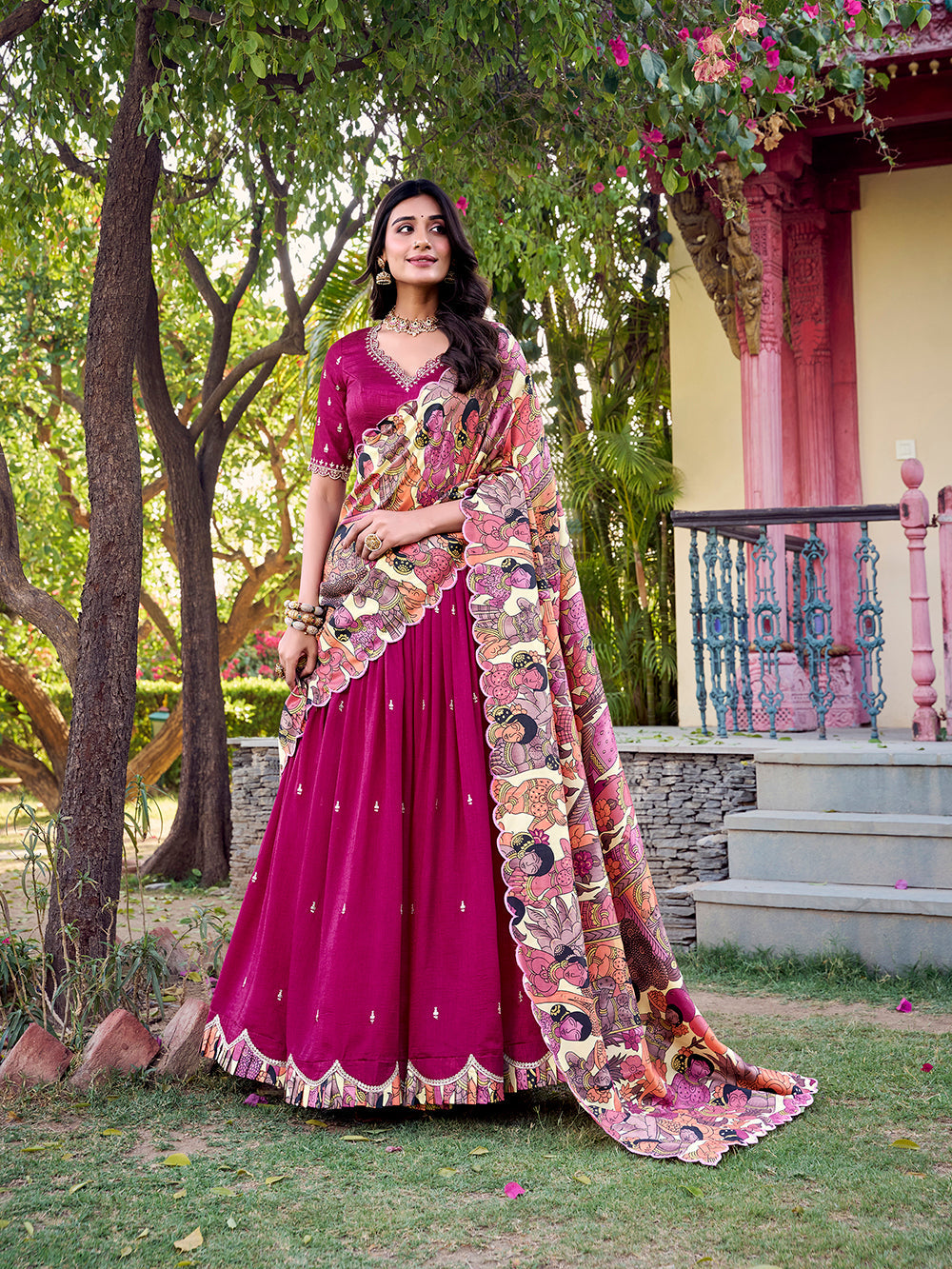 Amazing Hot Pink Sequins Work Vichitra Silk Designer Lehenga With Blouse