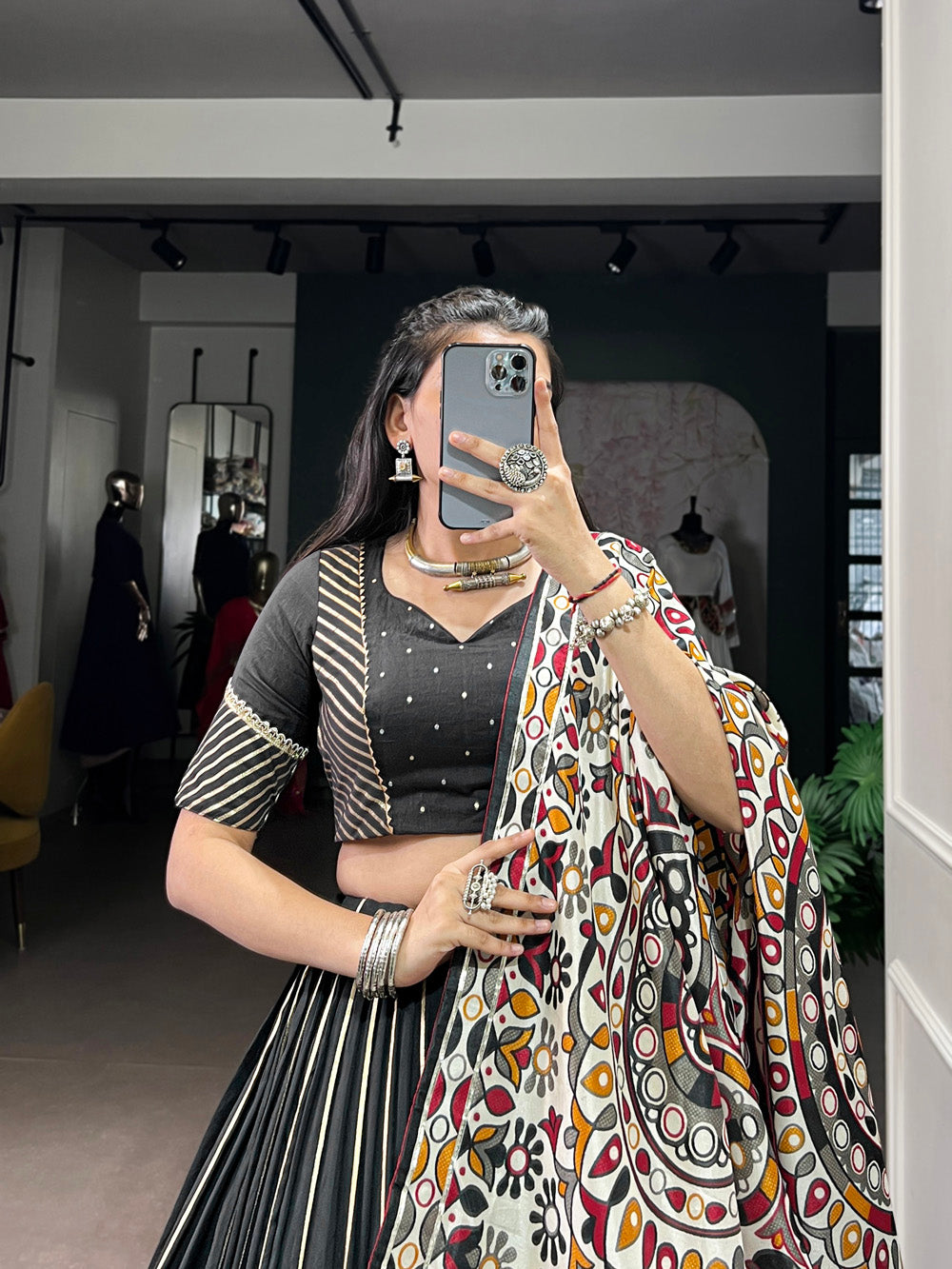 Black Color Zari Weaving Work With Embossed Design Chanderi Lehenga Choli