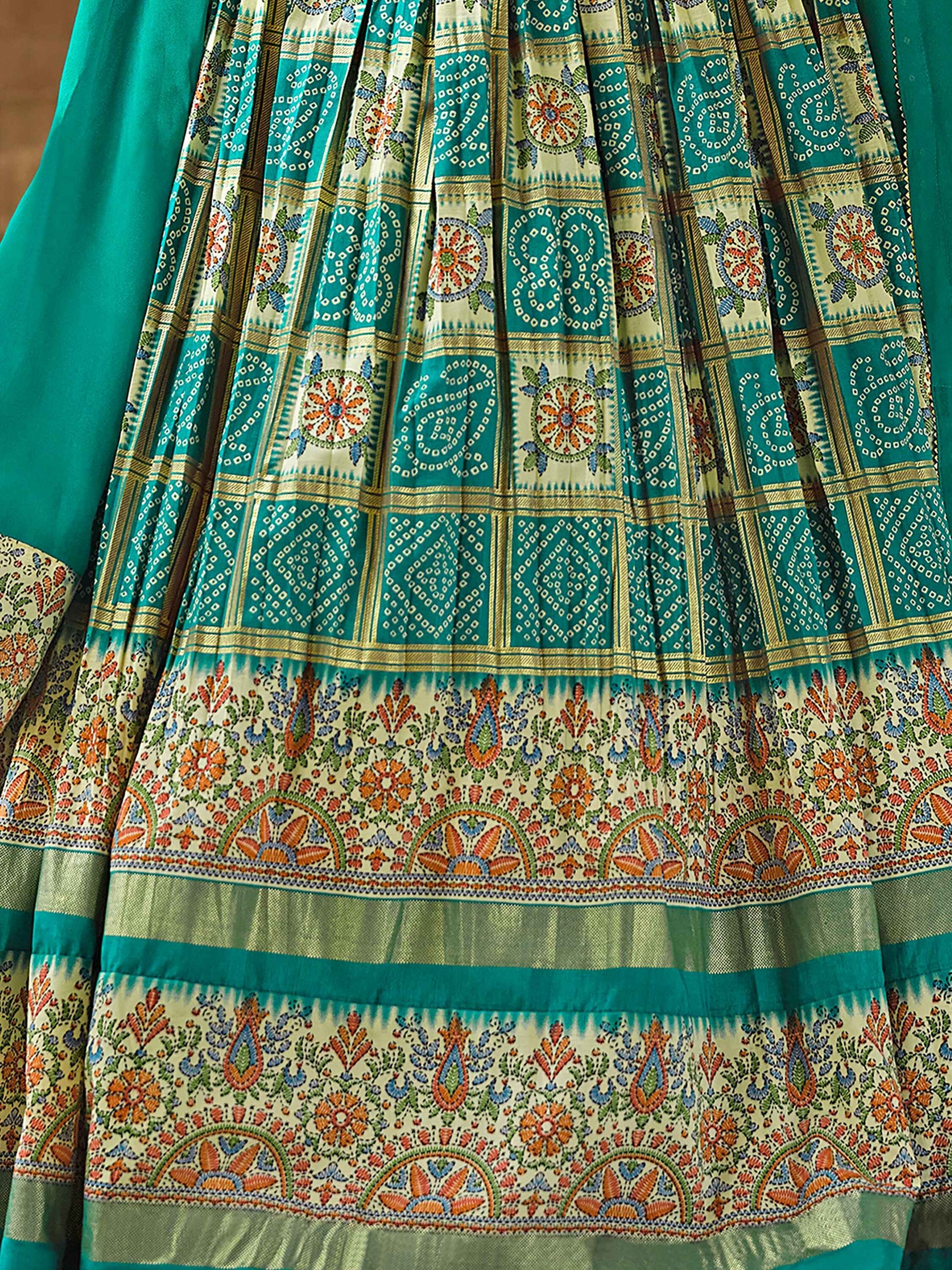 Stunning Green Bandhani Print Silk Reception Wear Lehenga Choli
