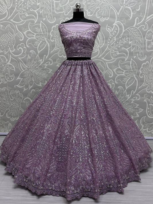 Amazing Purple Sequins Heavy Net Wedding Wear Lehenga Choli