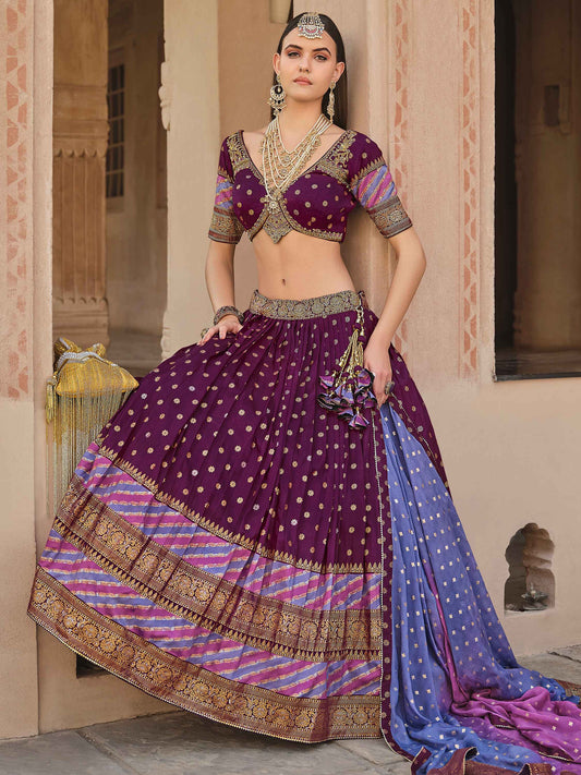 Beautiful Wine Color Sequins Silk Designer Lehenga Choli With Dupatta